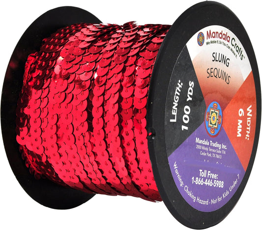 100 Yards 6Mm Red Sequins Strips on a Roll - Flat Paillettes Trim Ribbon Sequins String Spool by the Yard for Sewing, Costumes, Crafts, Embellishments, and Decorations