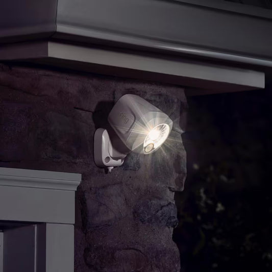 Smart Lighting White Motion Activated Outdoor Integrated LED Spotlight Battery