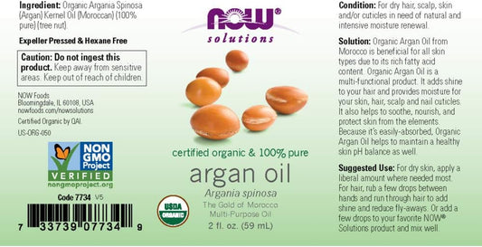 Solutions, Organic Argan Oil, Certified Organic and 100% Pure, "Gold of Morocco" Multi-Purpose Oil, 2-Ounce