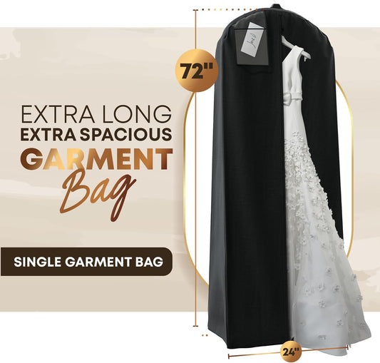 Wedding Dress Garment Bag - 72" Garment Bags for Hanging Clothes with 20" Gusset for Puffy Gowns - Durable Dress Cover for Travel or Storage - Rip-Resistant with ID Window - Black