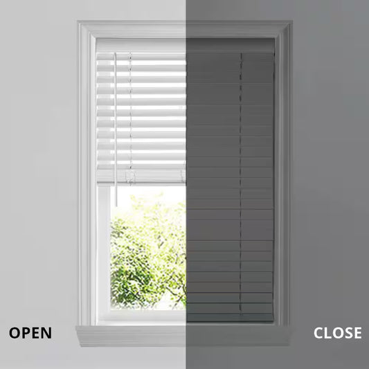 White Cordless Faux Wood Blinds for Windows with 2 In. Slats - 59 In. W X 48 In. L (Actual Size 58.5 In. W X 48 In. L)
