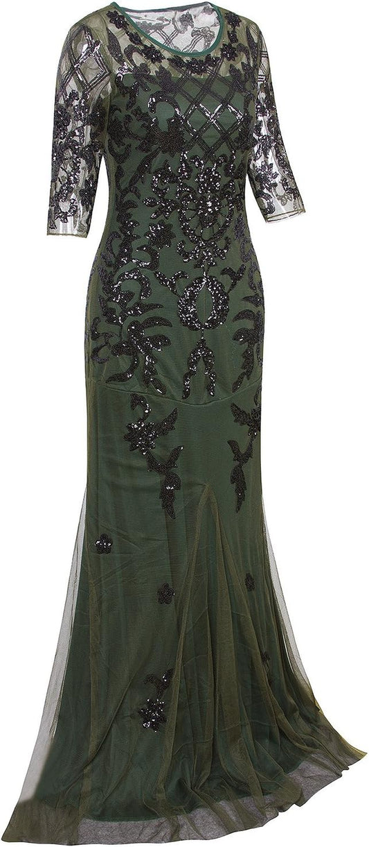 Vintage 1920S Long Wedding Prom Dresses 2/3 Sleeve Sequin Party Evening Gown